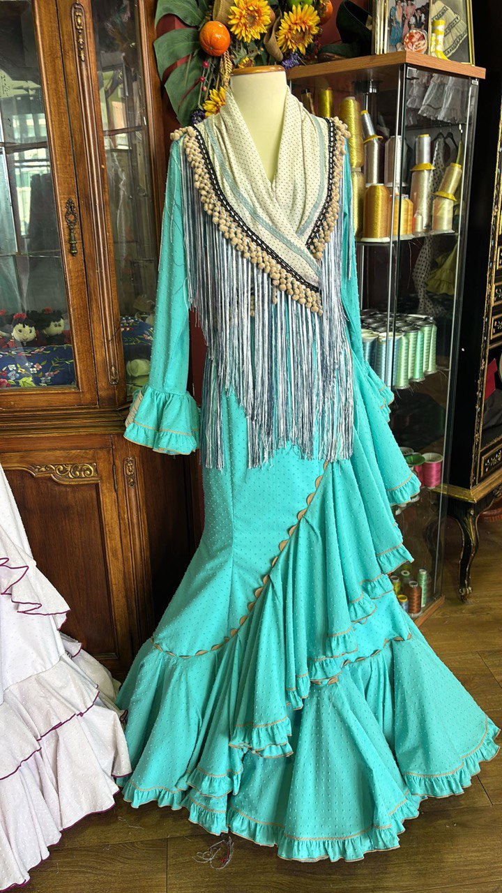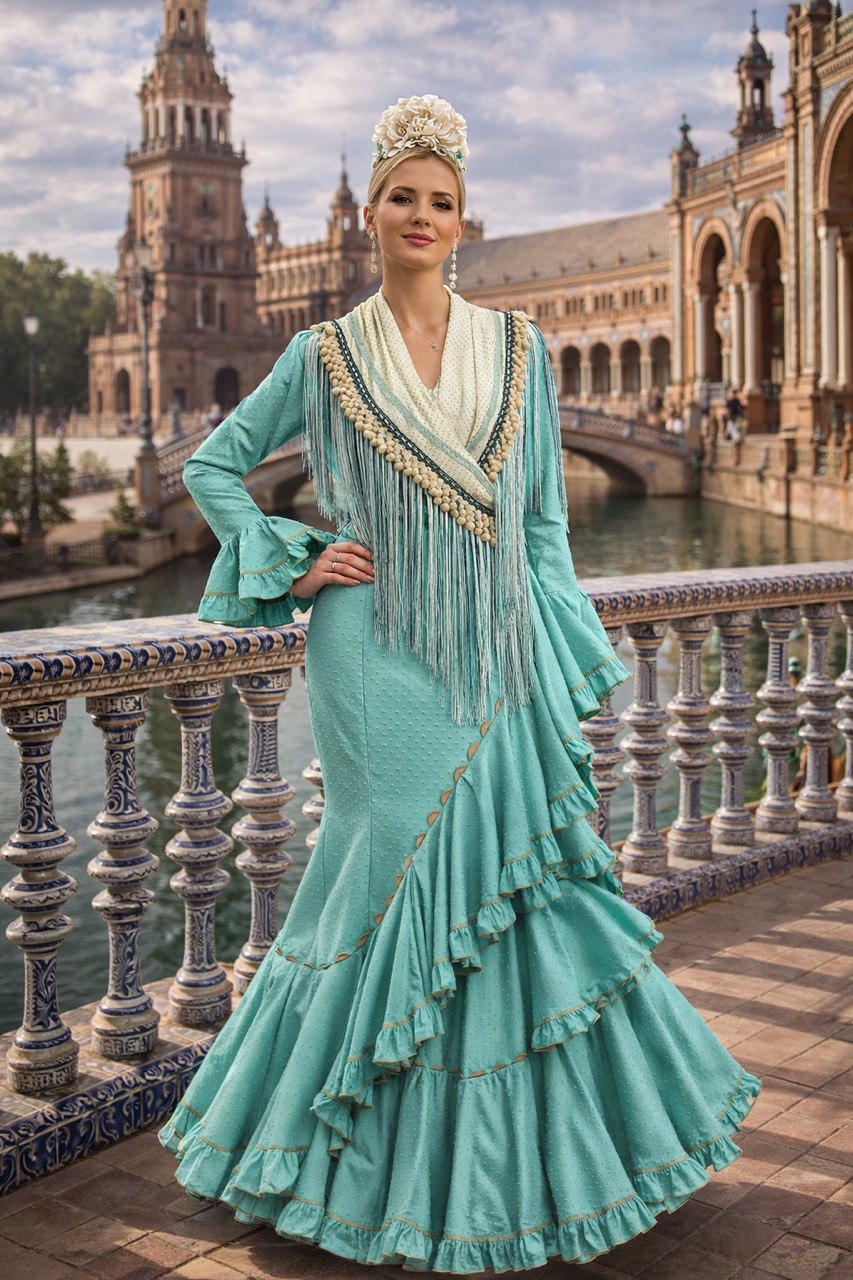 Un modelo sofisticado y femenino, perfecto para destacar en feria, romería o cualquier evento flamenco.