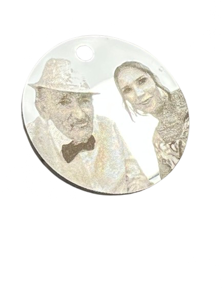 Acero inoxidable de la mayor calidad. Grabado de cualquier imagen. Puedes grabar imagen a una cara y texto a otra.